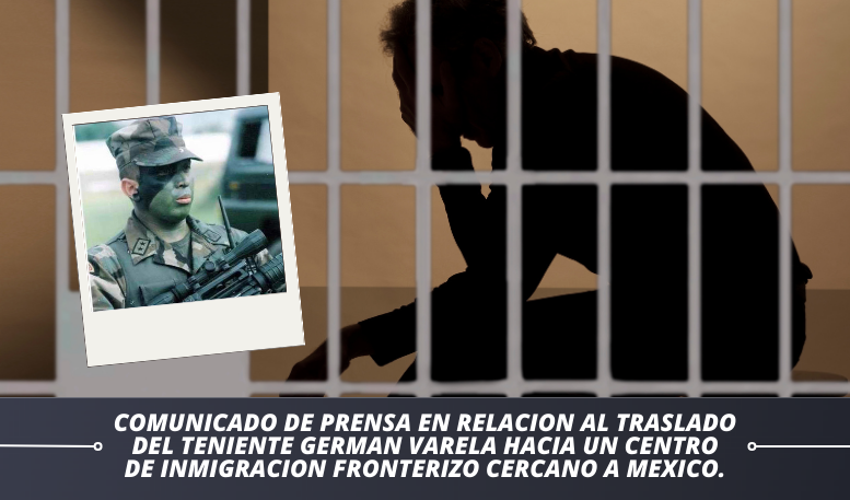 COMUNICADO DE PRENSA EN RELACION AL TRASLADO DEL TENIENTE GERMAN VARELA HACIA UN CENTRO DE INMIGRACION FRONTERIZO CERCANO A MEXICO